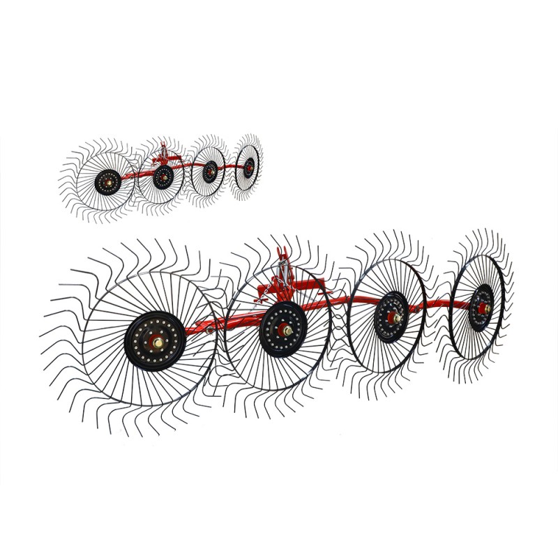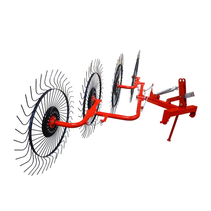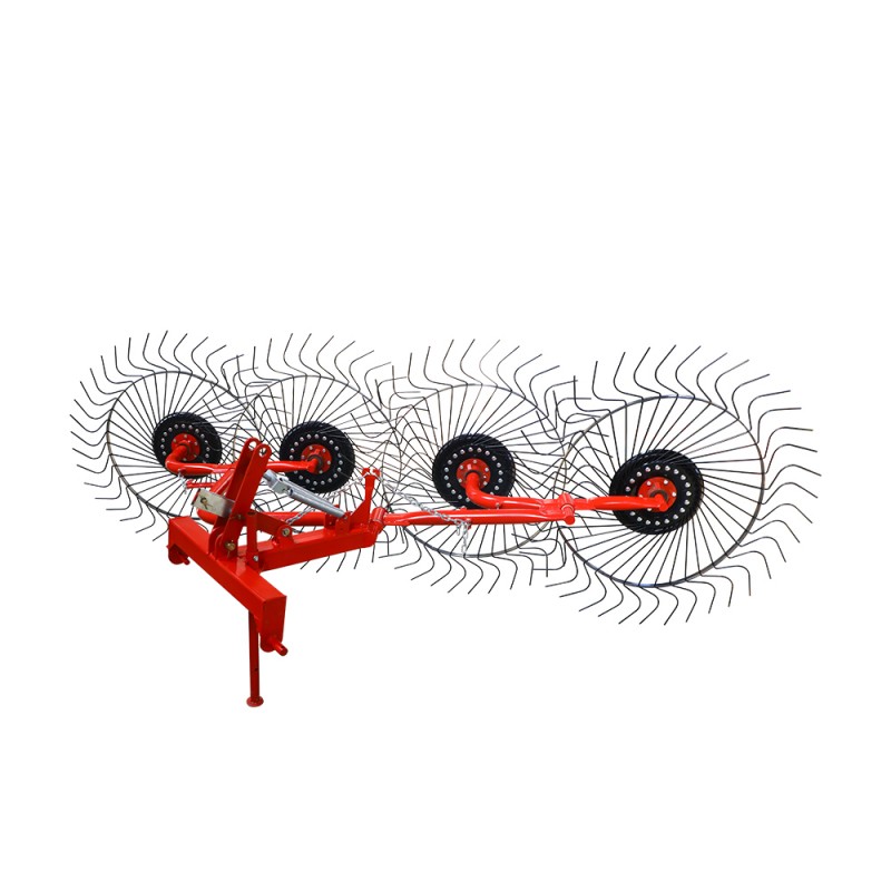 ফার্ম রেক হ'ল একটি ঘাস সংগ্রহকারী যন্ত্রপাতি যা মাটিতে ঘাস ছড়িয়ে ছিটিয়ে ঘাসের স্ট্রিপগুলিতে জড়ো করে। এই মেশিনটি চাকাযুক্ত ট্র্যাক্টরের তিন-পয়েন্ট সাসপেনশন ডিভাইসে ঝুলন্ত জন্য উপযুক্ত। কাজের অংশটি দাঁতগুলির সাথে একটি আঙুলের ডিস্ক, এবং মেশিনটি ধারাবাহিকভাবে পরবর্তী আঙুলের ডিস্কে আঙুলের ডিস্ক দ্বারা প্রেরণ করা হয় যতক্ষণ না একটি আলগা এবং বায়ুচলাচল ঘাসের স্ট্রিপ গঠিত হয়। ডায়ালের কোণ পরিবর্তন করা ঘাস স্ট্রিপের প্রস্থকে সামঞ্জস্য করতে পারে। দাঁতগুলি দীর্ঘ স্প্রিং স্টিলের দাঁত, যার ভাল কম্বিং এফেক্ট এবং শক্তিশালী অনুকরণের কর্মক্ষমতা রয়েছে। দাঁতগুলি হুইল হাবের উপর একটি রেডিয়াল কনফিগারেশন তৈরি করে, যা বাতাসের প্রভাবকে দূর করতে পারে এবং ধুলার উত্তরণকে সহজতর করতে পারে। মাটিতে আঙুলের ডিস্কের চাপ নিয়ন্ত্রণ করতে একটি উত্তেজনা বসন্ত ব্যবহার করে, ফসল এবং স্থল শর্ত অনুযায়ী অ্যাডজাস্টমেন্ট প্লেট প্রসারিত করে অবতরণ চাপটি সামঞ্জস্য করা যেতে পারে। ফার্ম রেকের একটি সাধারণ কাঠামো, সহজ অপারেশন, নির্ভরযোগ্য ব্যবহার, কয়েকটি ত্রুটি, উচ্চ দক্ষতা এবং ভাল কাজের মানের রয়েছে। সহজ রক্ষণাবেক্ষণ এবং ভাল পাওয়ার ম্যাচিং পারফরম্যান্স।